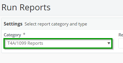 Step 2: Select T4A/1099 REPORTS from the Category drop down menu.