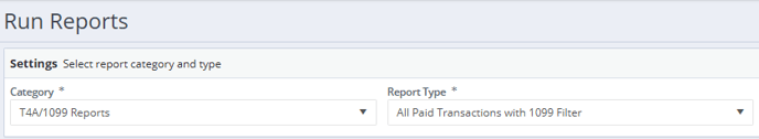 Step 3: Select All Paid Transactions with 1099 Filter OR All Paid Transactions with 1099 Filter (Cross Projects) from the Report Type drop-down menu.