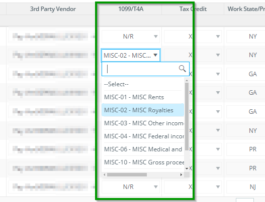 Step 4: Select the appropriate 1099 code from the 1099/T4A drop down menu.