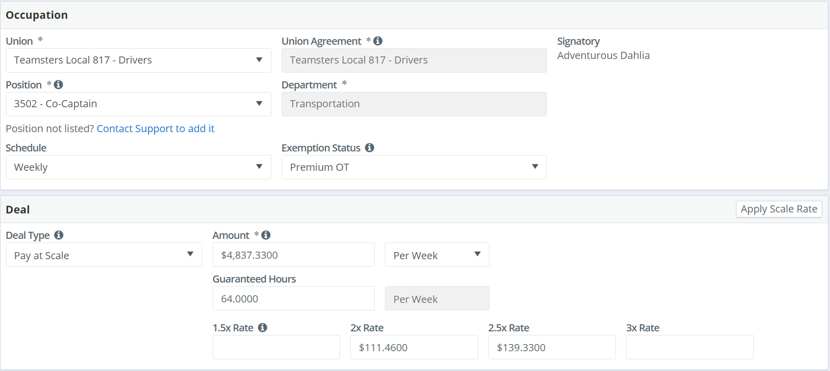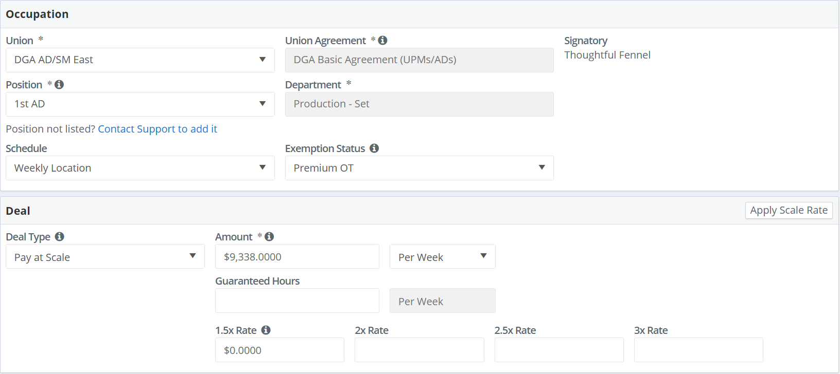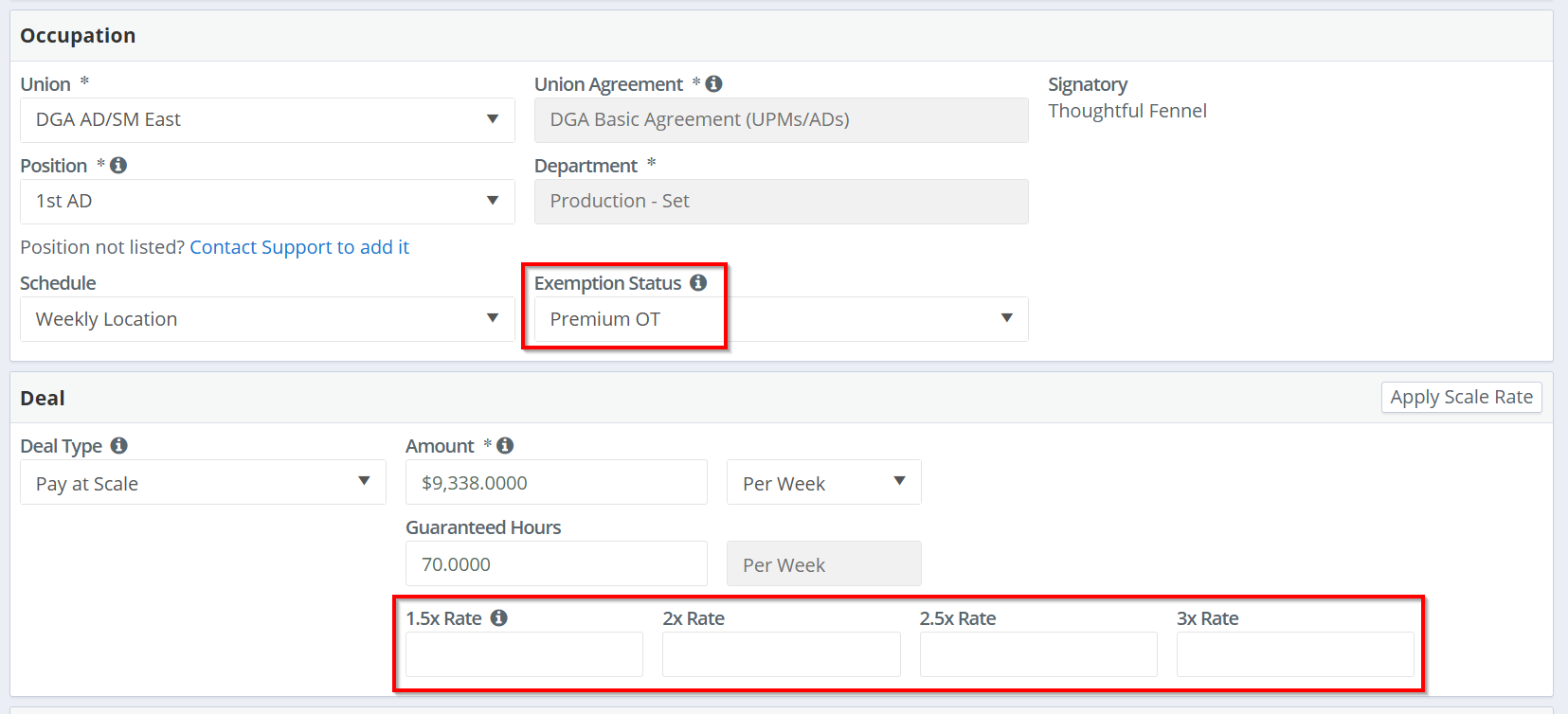 Although the rates of overtime provided on the start form are used when grossing a digital timecard, the overtime schedule is controlled by the Hours to Gross engine. HTG will return x1.5, x2, x2.5 and 3x hours based on the specific contract in use. From there, the user grossing the timecard can make manual adjustments.