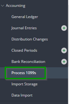 Step 8: Under Accounting on the left navigation, click “Process 1099s.”