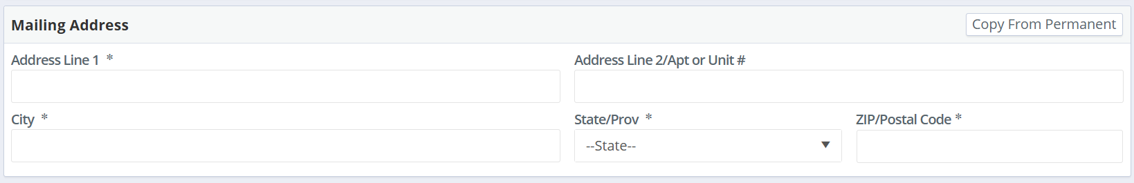 Step 4: Complete all required fields in the "Mailing Address" section or click "Copy From Permanent" if applicable.