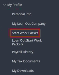 Step 1: Under "My Profile" on the left, click "Start Work Packet".