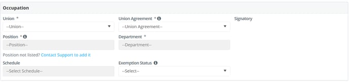 Note: The union agreement and schedule will auto-populate if there is only one set up on the project. Otherwise, select the most applicable from the dropdown.