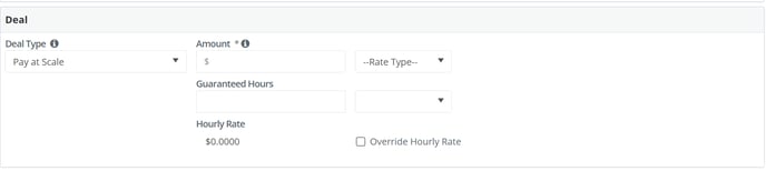 Step 5: In the "Deal" section, select the deal type and enter the amount in the "Amount" field. Select the rate type from the dropdown menu and enter the guaranteed hours if applicable.