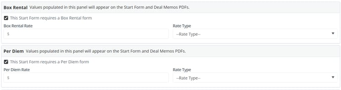 Step 6 (Optional): To add box rental or per diem check the boxes to add the rate and rate type.