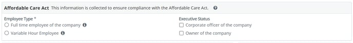 Step 7: Make a selection for the "Affordable Care Act" section.