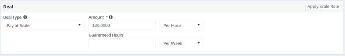 The rate type options are per hour, per day, or per week and the "Guaranteed Hours" field is optional. For union positions configured for hours to gross, you may click "Apply Scale Rate" for the most current scale rate available.
