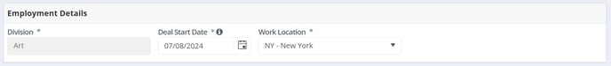 Note: Union employee start forms include a "Deal Type" dropdown field for automatic scale rate updates. Choose when/if to update rates with these options: