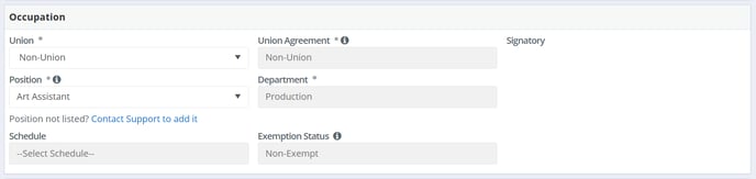 Note: If your project uses contracts that are configured for Hours To Gross, and/or if your project is using divisions (department heads), you may find some fields are prefilled.